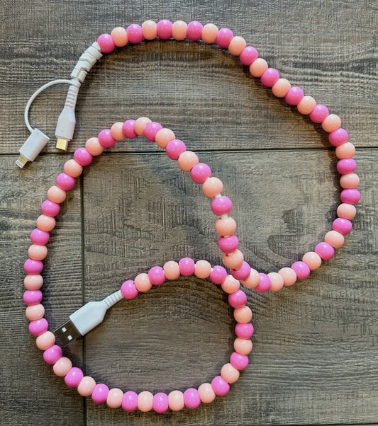 Beaded charger with lightening and USB-C cable